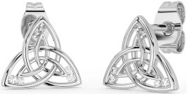 Diamond Silver Celtic Trinity Knot Stud Earrings