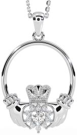 Diamond Silver Claddagh Necklace