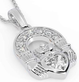 Diamond Silver Claddagh Necklace