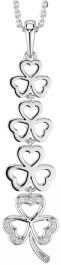 Diamond Silver Shamrock Necklace
