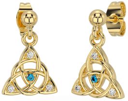 Diamond Topaz Gold Silver Celtic Trinity Knot Dangle Earrings