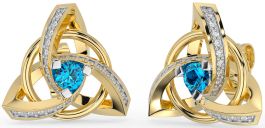 Diamond Topaz Gold Silver Celtic Trinity Knot Stud Earrings