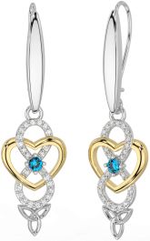 Diamond Topaz Gold Silver Infinity Celtic Trinity Knot Dangle Earrings