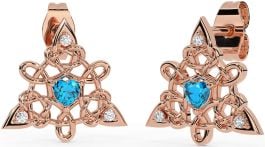 Diamond Topaz Rose Gold Silver Celtic Trinity Knot Stud Earrings