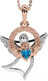Diamond Topaz Rose Gold Silver Claddagh Celtic Trinity Knot Necklace