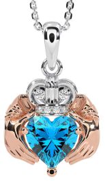 Diamond Topaz Rose Gold Silver Claddagh Necklace