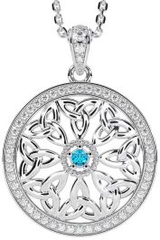 Diamond Topaz Silver Celtic Trinity Knot Necklace
