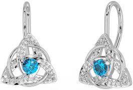 Diamond Topaz Silver Celtic Trinity Knot Stud Earrings