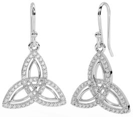 Diamond White Gold Celtic Trinity Knot Dangle Earrings
