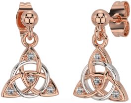 Diamond White Rose Gold Celtic Trinity Knot Dangle Earrings