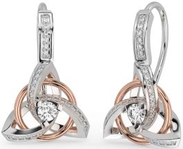 Diamond White Rose Gold Celtic Trinity Knot Dangle Earrings