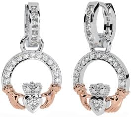 Diamond White Rose Gold Claddagh Dangle Earrings