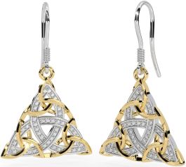 Diamond White Yellow Gold Celtic Trinity Knot Dangle Earrings