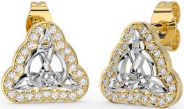 Diamond White Yellow Gold Celtic Trinity Knot Stud Earrings