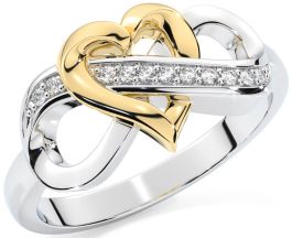 Diamond White Yellow Gold Infinity Heart Ring
