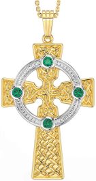Emerald Gold Silver Celtic Cross Necklace