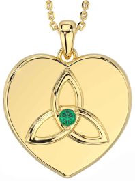 Emerald Gold Silver Celtic Trinity Knot Heart Necklace
