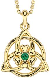 Emerald Gold Silver Celtic Trinity Knot Irish Flower Necklace