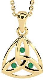 Emerald Gold Silver Celtic Trinity Knot Necklace