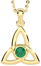 Emerald Gold Silver Celtic Trinity Knot Necklace