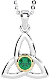 Emerald Gold Silver Celtic Trinity Knot Necklace