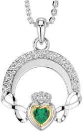 Emerald Gold Silver Claddagh Celtic Trinity Knot Infinity Necklace