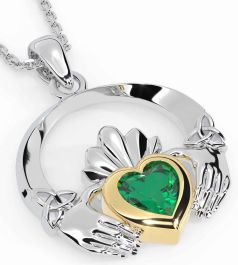 Emerald Gold Silver Claddagh Trinity knot Necklace