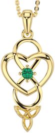 Emerald Gold Silver Infinity Celtic Trinity Knot Heart Necklace