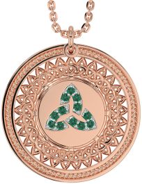 Emerald Rose Gold Celtic Trinity Knot Necklace