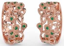Emerald Rose Gold Shamrock Celtic Trinity Knot Stud Earrings