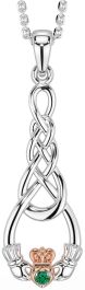 Emerald Rose Gold Silver Celtic Claddagh Necklace