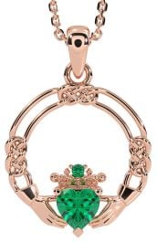 Emerald Rose Gold Silver Celtic Claddagh Necklace