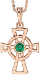 Emerald Rose Gold Silver Celtic Cross Necklace