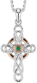 Emerald Rose Gold Silver Celtic Cross Necklace