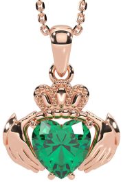 Emerald Rose Gold Silver Claddagh Necklace