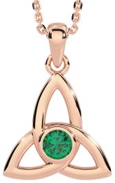 Emerald Rose Gold Silver Celtic Trinity Knot Necklace