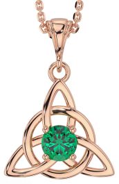 Emerald Rose Gold Silver Celtic Trinity Knot Necklace
