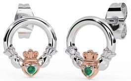 Emerald Rose Gold Silver Claddagh Stud Earrings
