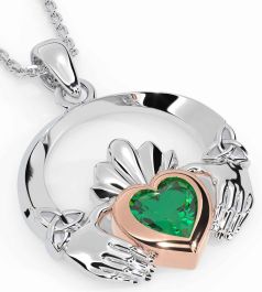 Emerald Rose Gold Silver Claddagh Trinity knot Necklace