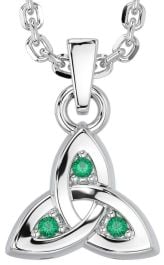 Emerald Silver Celtic Trinity Knot Charm Necklace