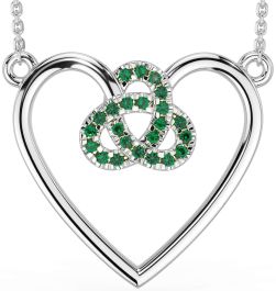 Emerald Silver Celtic Trinity Knot Heart Necklace