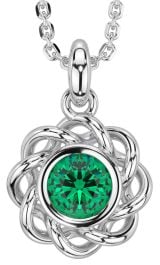 Emerald White Gold Celtic Necklace