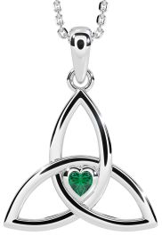 Emerald White Gold Celtic Trinity Knot Necklace