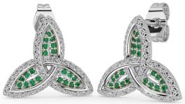 Emerald White Gold Celtic Trinity Knot Stud Earrings