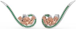 Emerald White Rose Gold Claddagh Climber Earrings