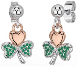 Emerald White Rose Gold Shamrock Dangle Earrings