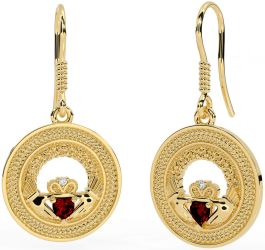 Garnet Gold Silver Celtic Claddagh Trinity Knot Dangle Earrings