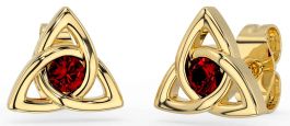 Garnet Gold Silver Celtic Trinity Knot Stud Earrings