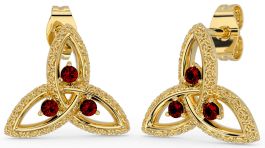Garnet Gold Silver Celtic Trinity Knot Stud Earrings