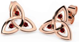 Garnet Rose Gold Celtic Trinity Knot Stud Earrings